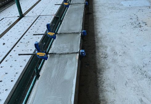 Custom form construction for repair sections using reusable molds. Matches existing patterns and profiles while maintaining structural connections. Ideal for stair repairs, edge restoration, and architectural concrete matching.